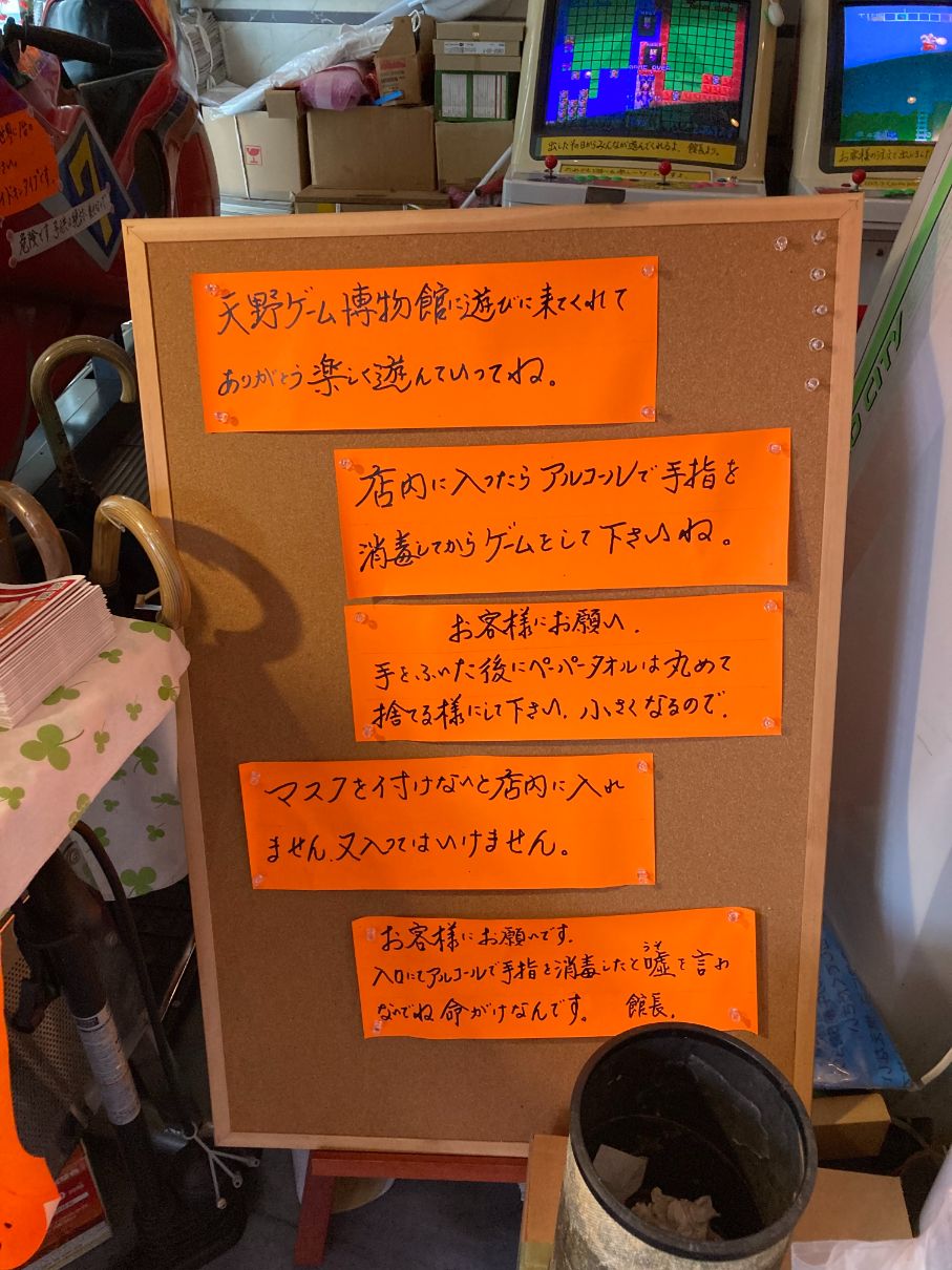 『天野ゲーム博物館に遊びに来てくれてありがとう。楽しく遊んでいってね』など、温かいウェルカムメッセージにはじまり、『なんてったって令和三年だもんね頑張らなくちゃーね。』と何故か奇々怪々の筐体に貼ってあったりする。