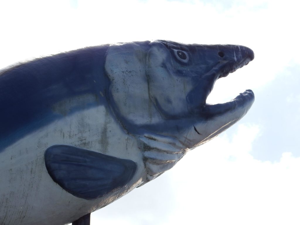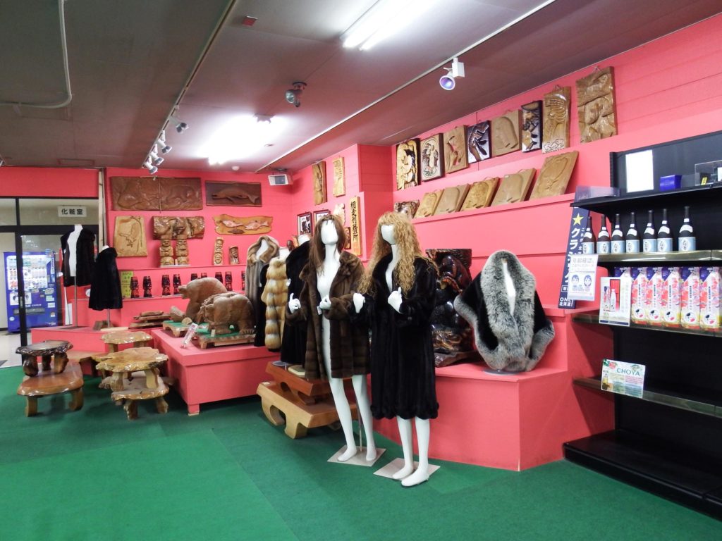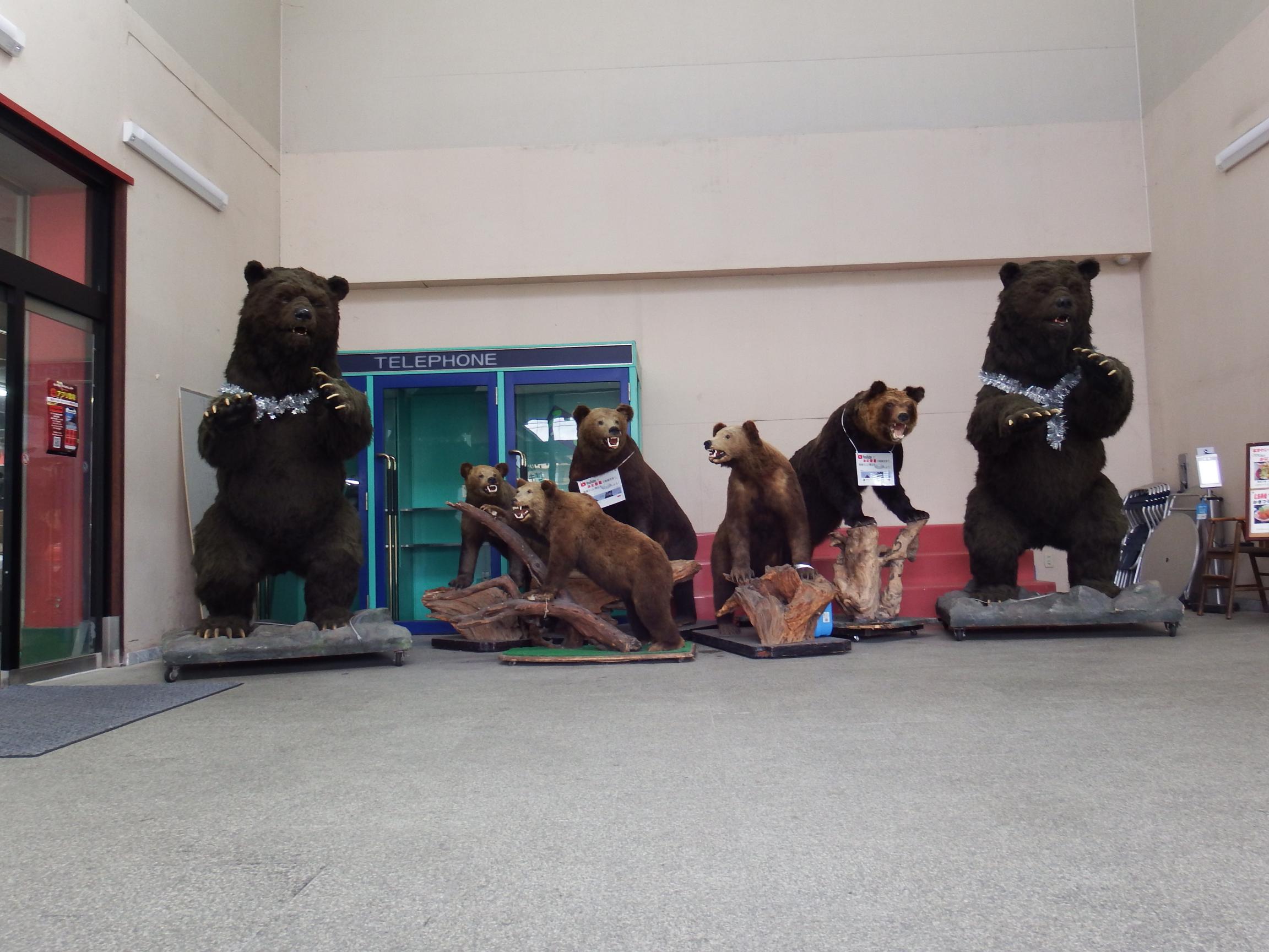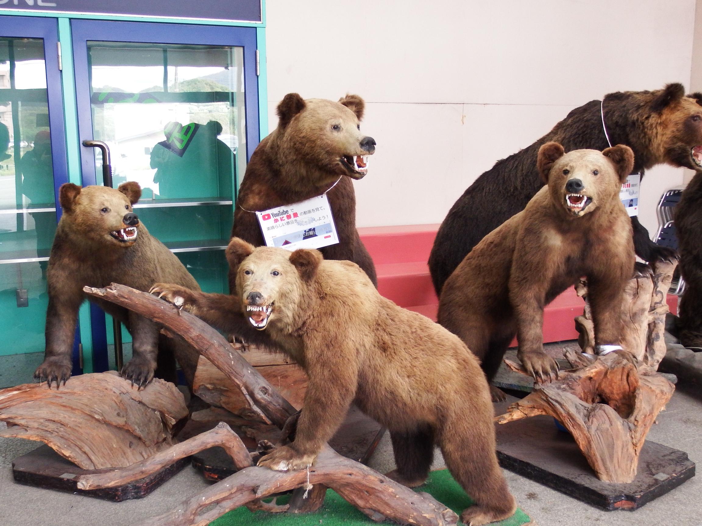 思わずハンドルを切ってでかい熊と鮭の店の前に停まり、絶句。