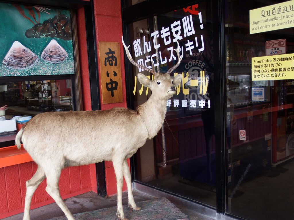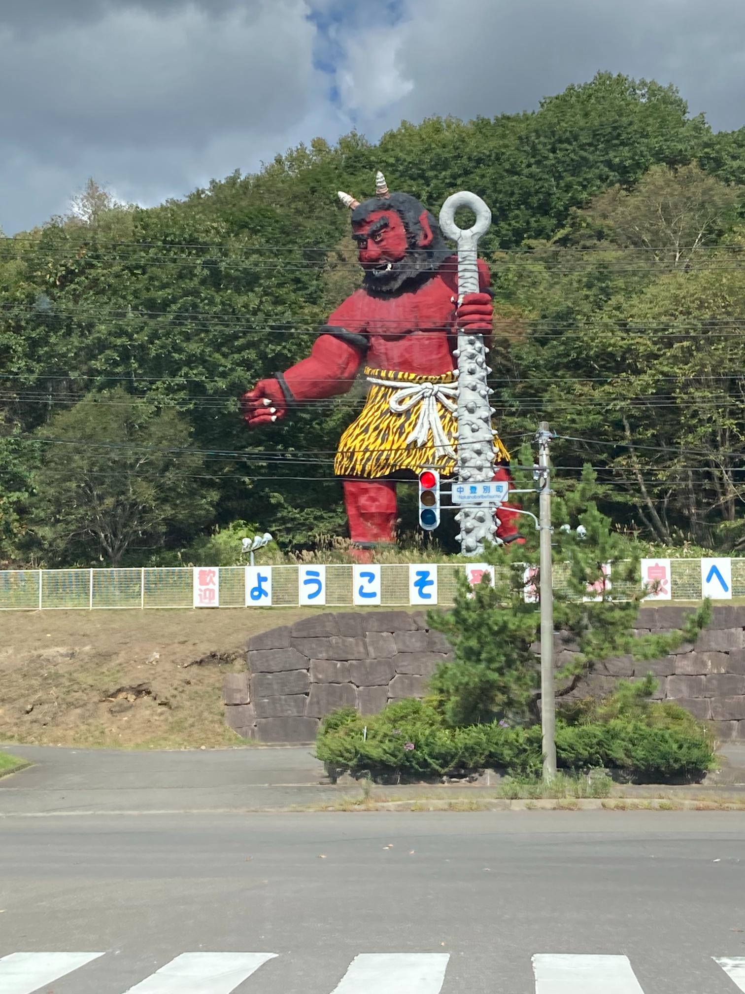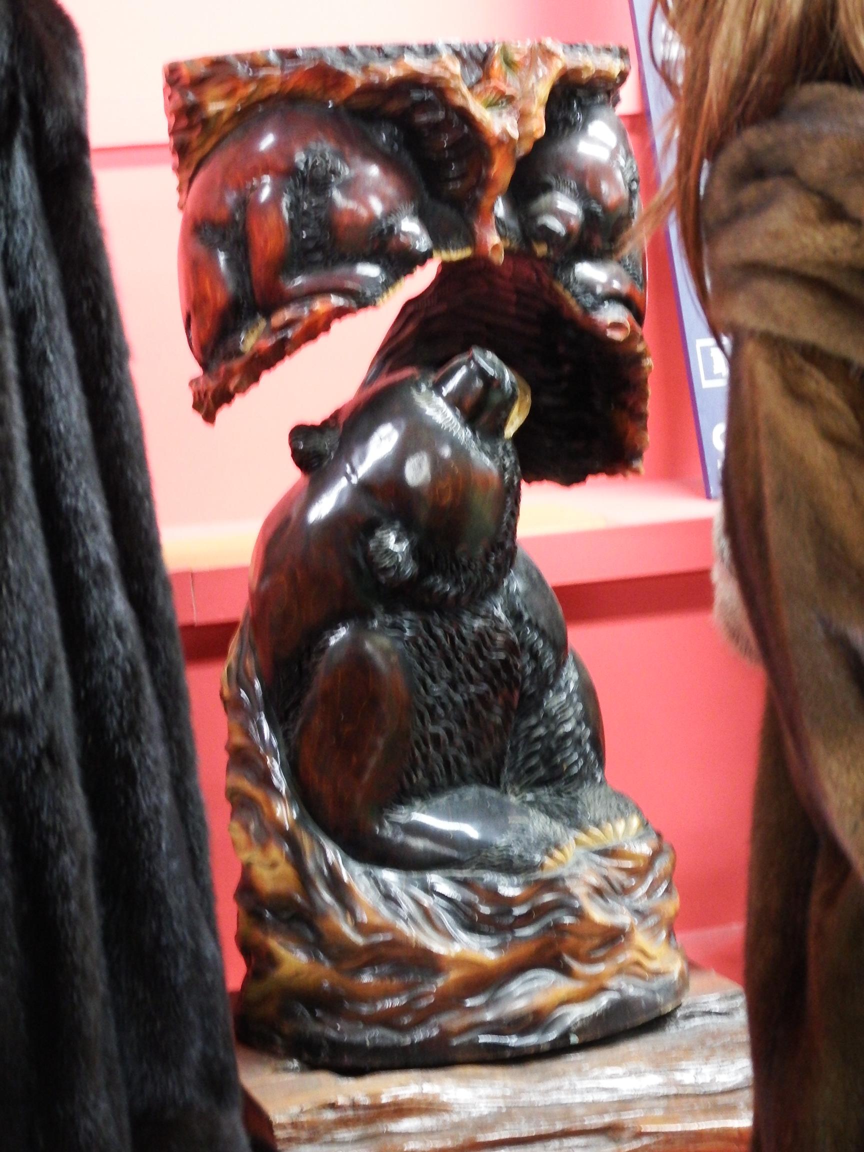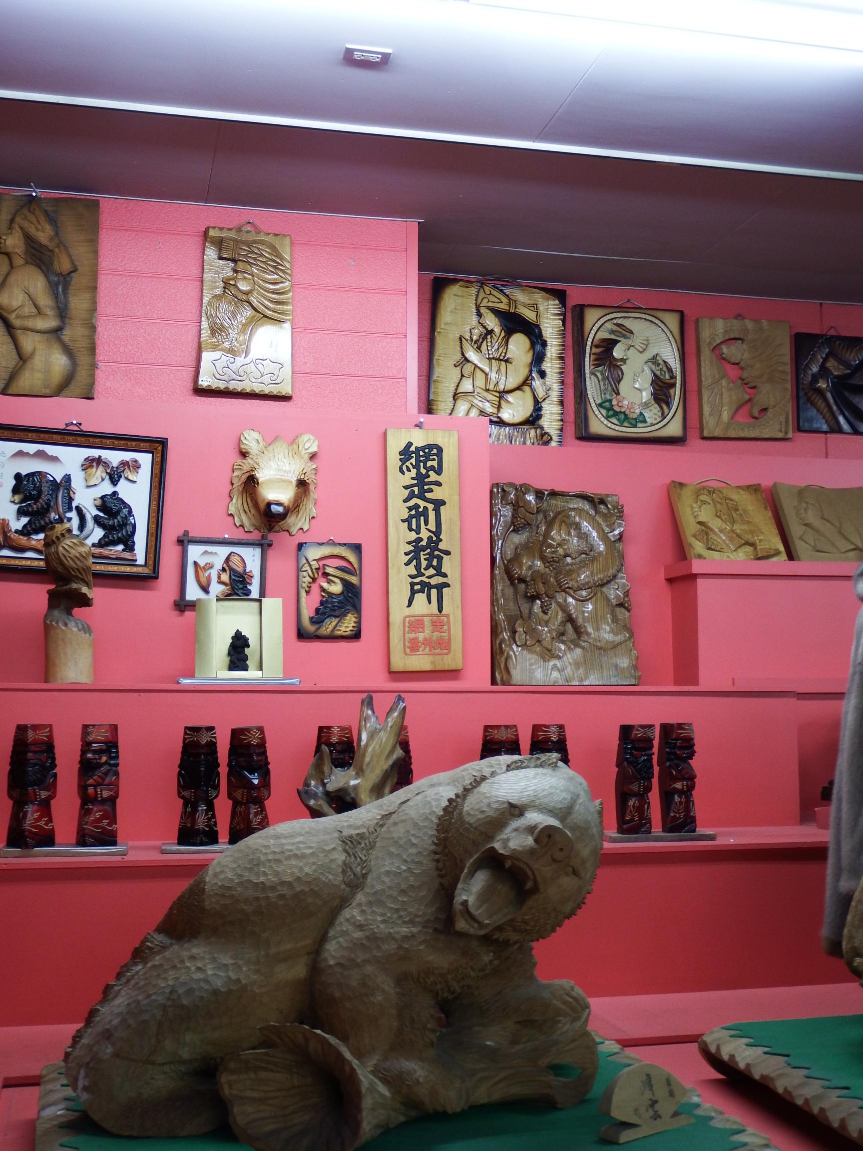 思わずハンドルを切ってでかい熊と鮭の店の前に停まり、絶句。