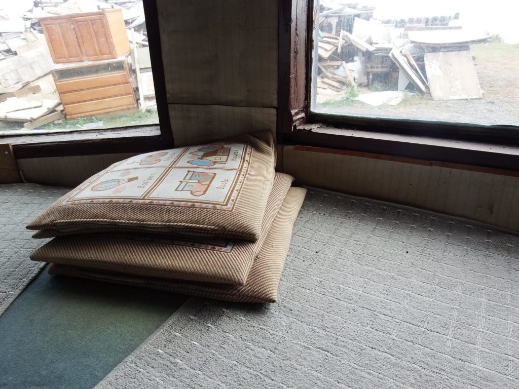 特徴的な外観なので辛うじて見落とすことはないですが、そばには瓦礫が積まれていたり、家電製品などの墓場になっています。