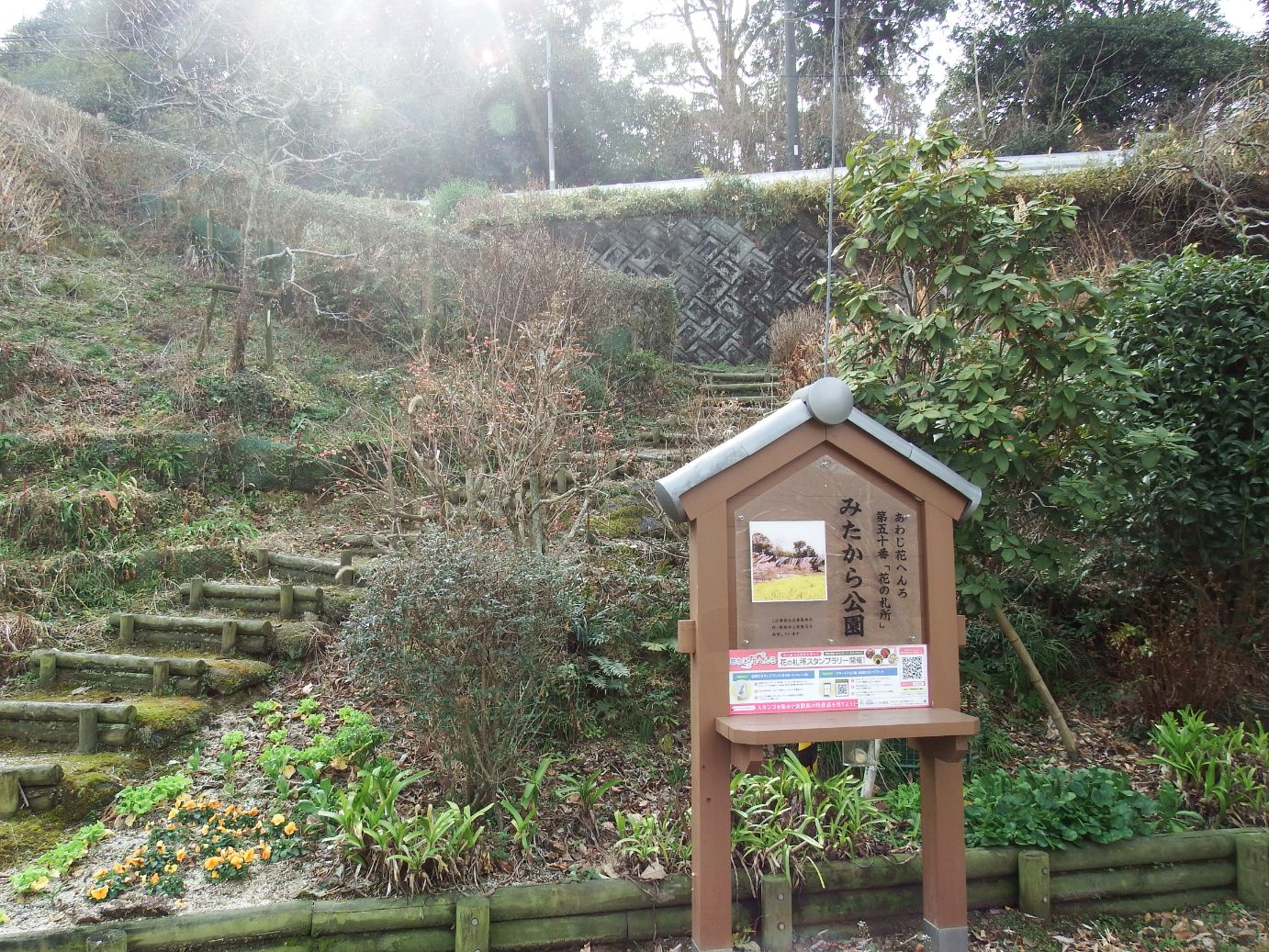 と進んでいくと『みたから公園』のスタンプラリー?かなんかの札所が。すぐ脇に階段があり、あそこに例の場所があるようです。